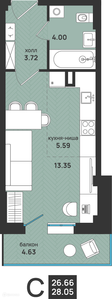 - ✅ Кухня: 5.59 м² — место для кулинарных шедевров.