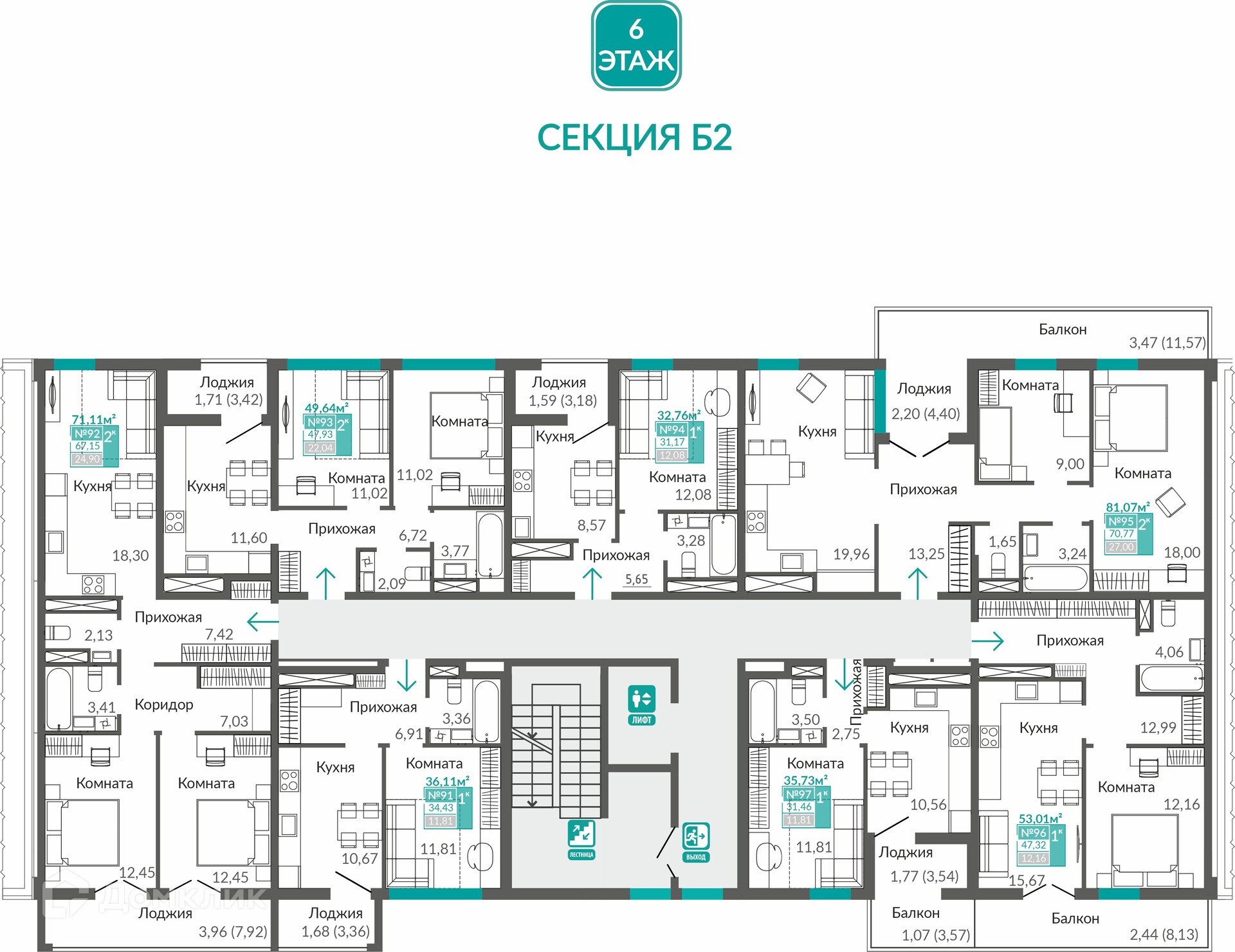 Площади квартир