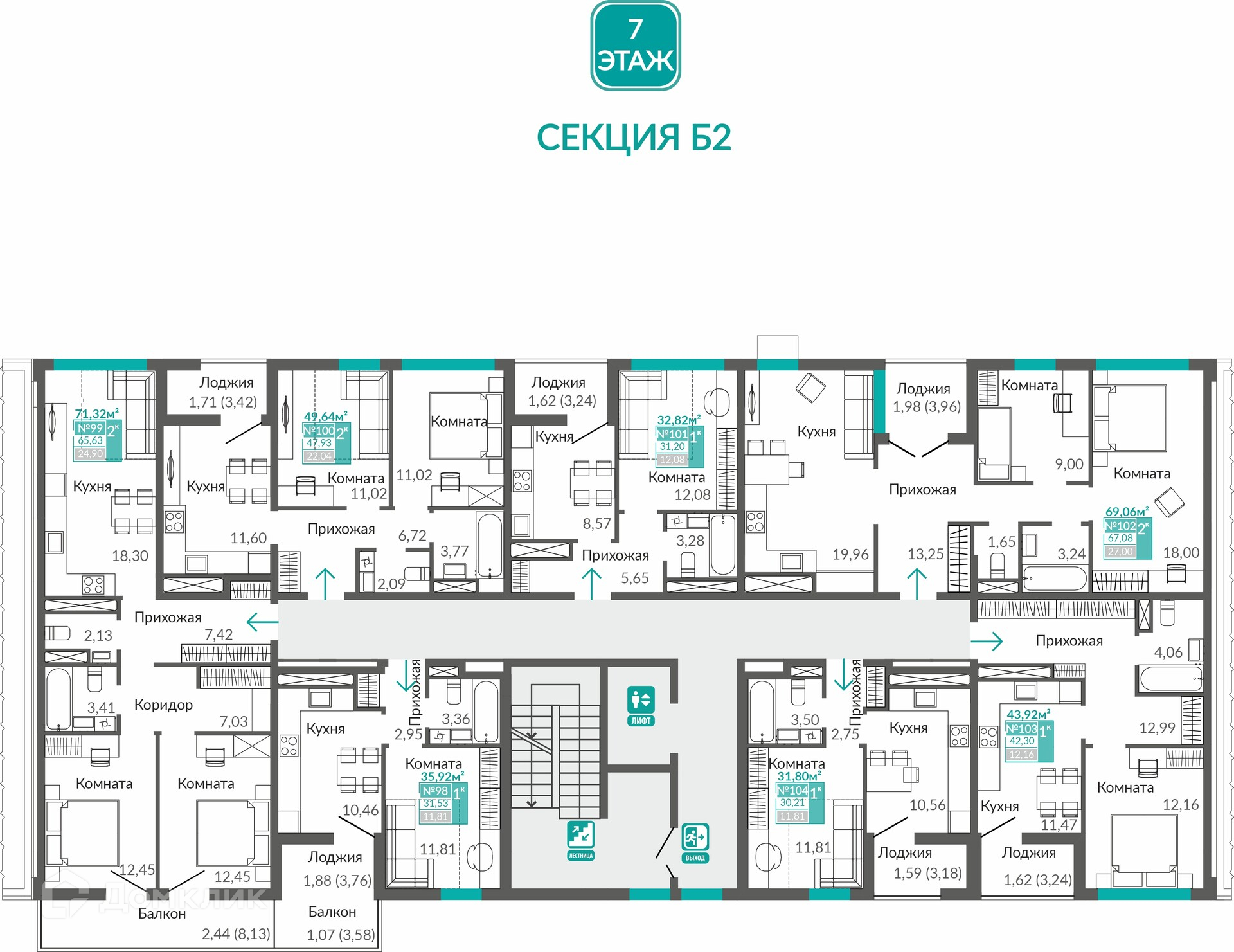 Площади квартир
