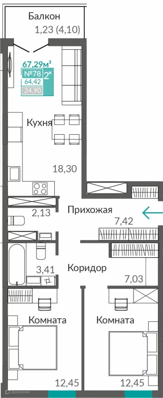 2 комн. квартира в Симферополе в ипотеку от 64 909 руб/месяц