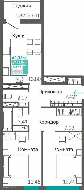 2 комн. квартира в Симферополе в ипотеку от 57 759 руб/месяц