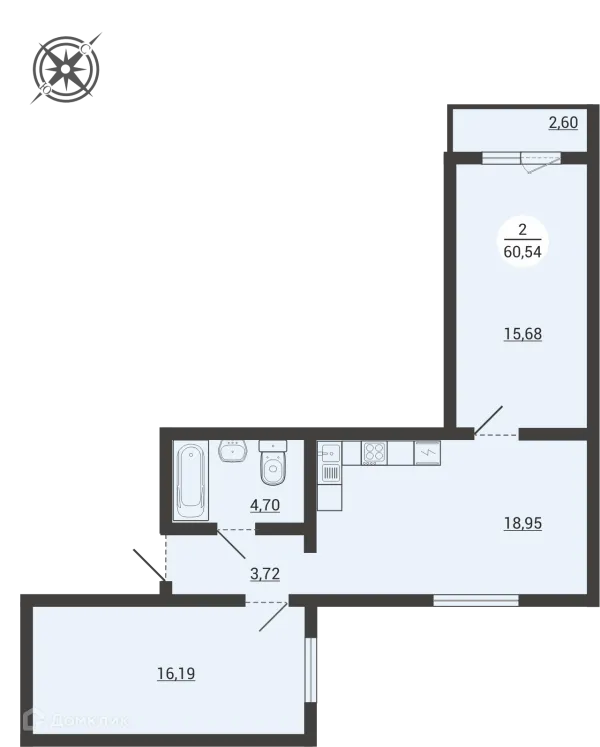 2 комн. квартира в Кургане в ипотеку от 38 015 руб/месяц