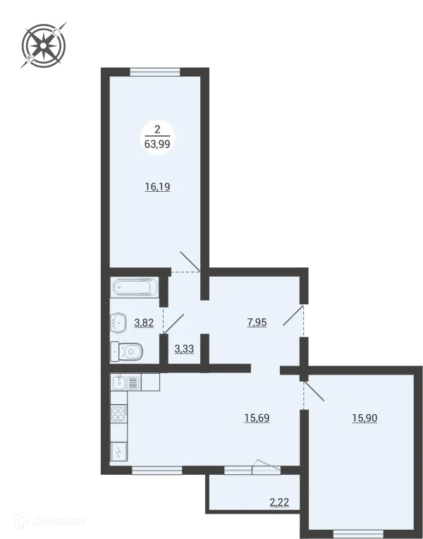 2 комн. квартира в Кургане в ипотеку от 55 159 руб/месяц