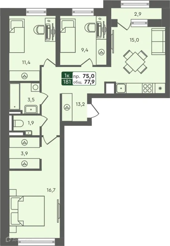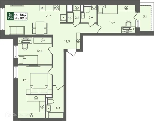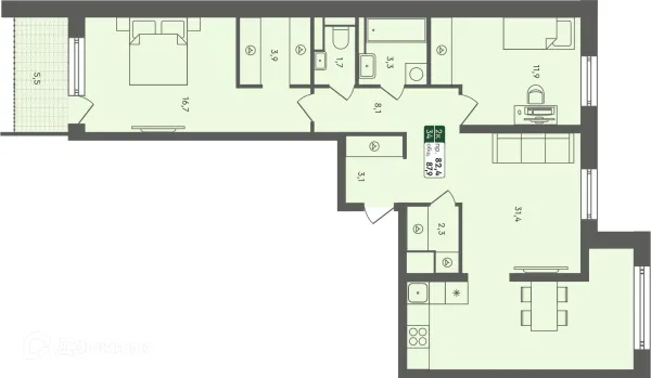 3 комн. квартира в Кургане в ипотеку от 68 913 руб/месяц