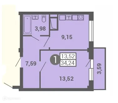 1 комн. квартира в Архангельске в ипотеку от 35 191 руб/месяц