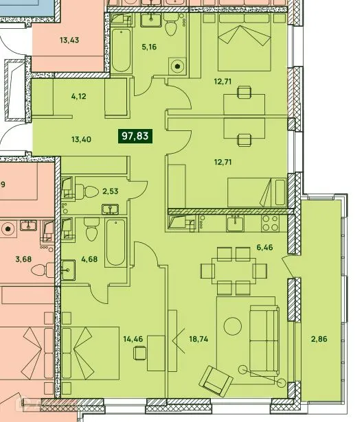 3 комн. квартира в Архангельске в ипотеку от 60 083 руб/месяц