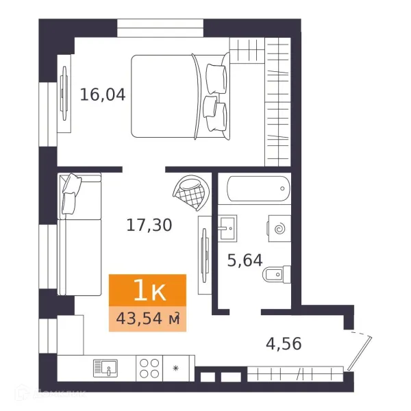 1 комн. квартира в Кургане в ипотеку от 45 906 руб/месяц