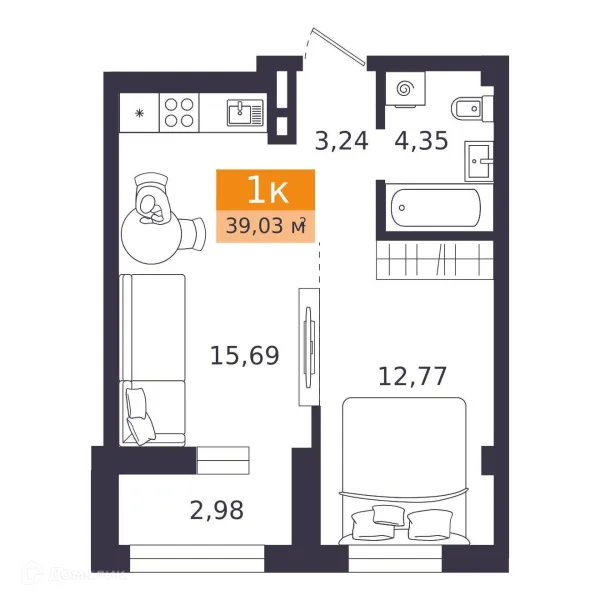 1 комн. квартира в Кургане в ипотеку от 39 124 руб/месяц